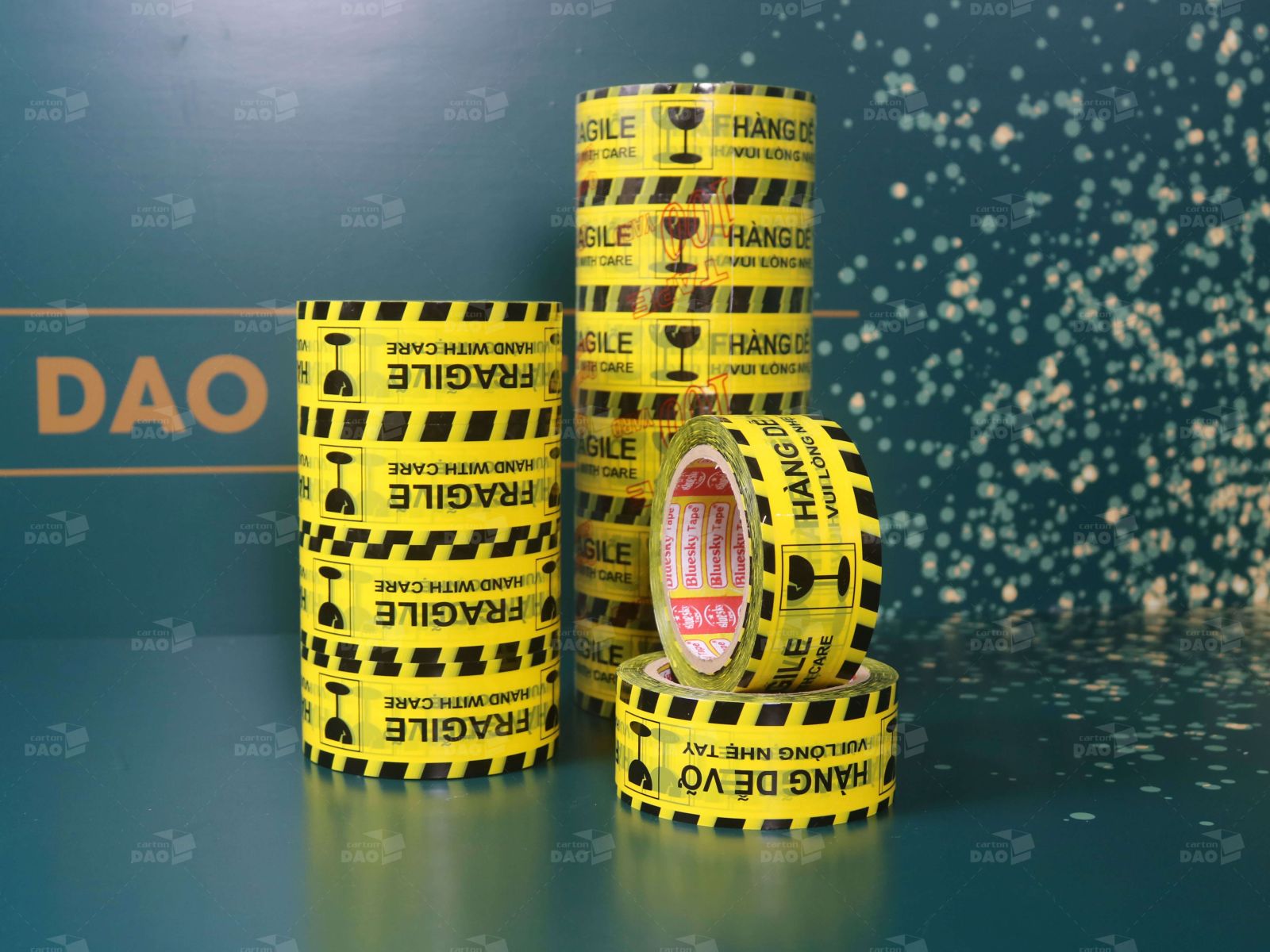 - Băng keo hàng dễ vỡ thường có màu trắng đỏ hoặc đen vàng với dòng chữ “hàng dễ vỡ” nổi bật.